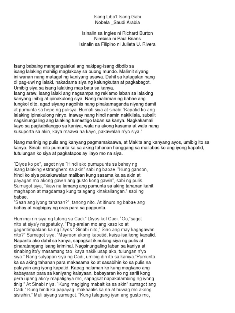 Isang Libo T Isang Gabi Grade 9 Aralin 3 5