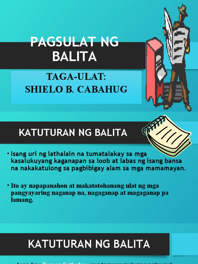 07032021 Mga katangian Ng Isang Mabuting Balita. -Marunong kumilatis kung alin ang anggulosa pangyayari na itatampok sa balita. Ang pahayagan diyaryo o peryodiko ay isang uri ng paglilimbag na naglalaman ng balita impormasyon at patalastas kadalasang na imprenta sa mababang halagaIto ay maaaring pangkalahatan o may espesyal na interes at kadalasan itong inilalathala ng araw-araw o lingguhan.