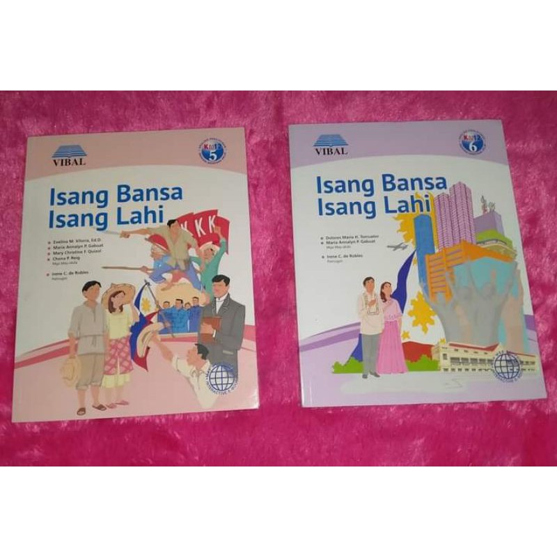 Isang Bansa Isang Lahi Grade 5 Araling Panlipunan Ang seryeng ito ay nakaayon sa kurikulum na K to 12 ng Kagawaran ng Edukasyon o DepEd. Vibal Group One Country One People K-12 Grade 5. Isang bansa isang lahi bayang minimithi Paraisong maitatawag dahil sa angking gandat yumi Perlas ng silangan sa atiy taguri Ng mga dayuhang minsan na ring yumurak sa ating inang lahi.