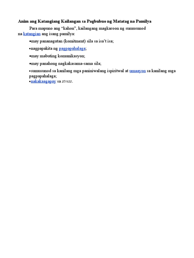 Ang mga katangian ng magandang relasyon na ito ay dapat taglayin ng bawat pagsasama na nagnanais tumagal at maging tunay na masaya. 13072013 katangiang kailangan sa pagbubuo ng matatag na pamilya 5 6. 20102010 Kaibigan para maging matatag ang inyong pamilya kailangang magkaroon ng sumusunod na katangian ang isang pamilya.